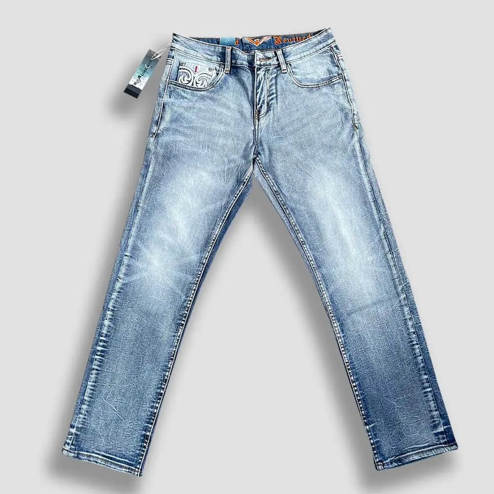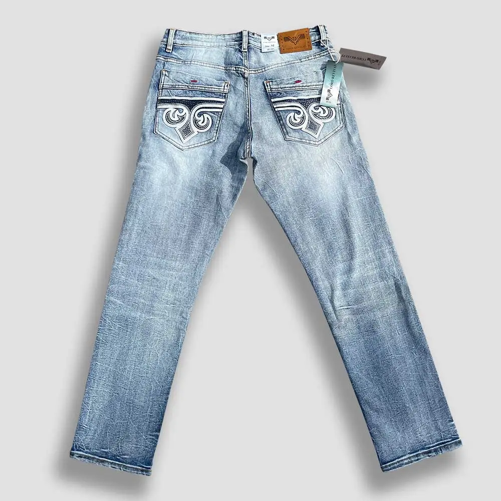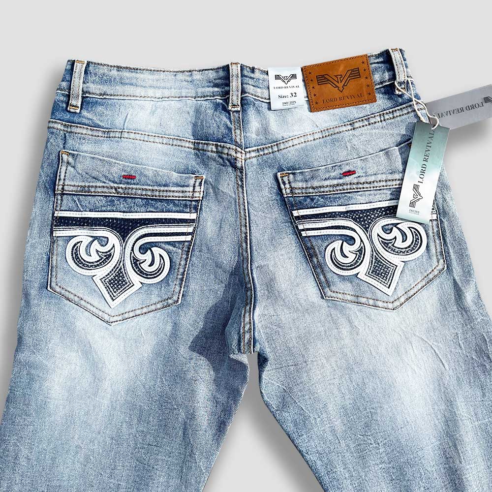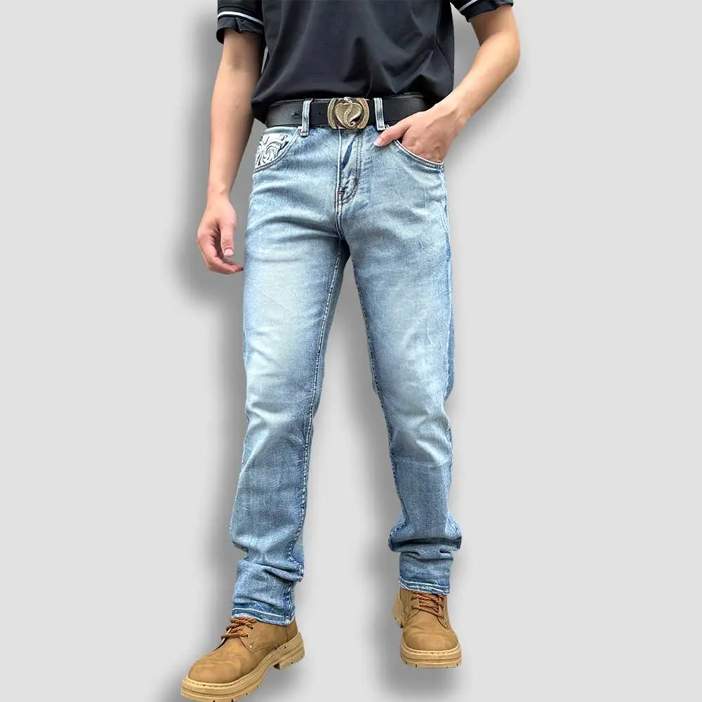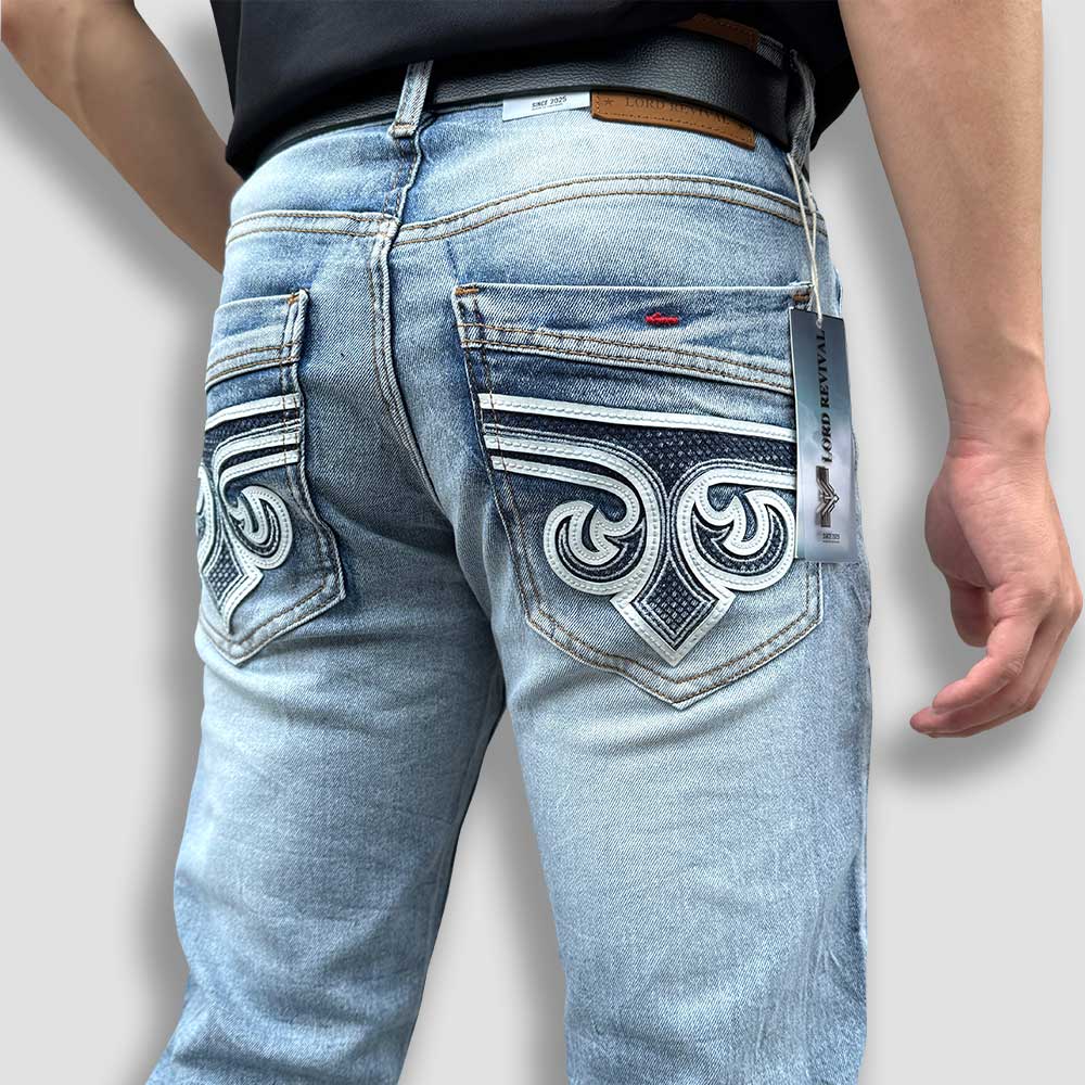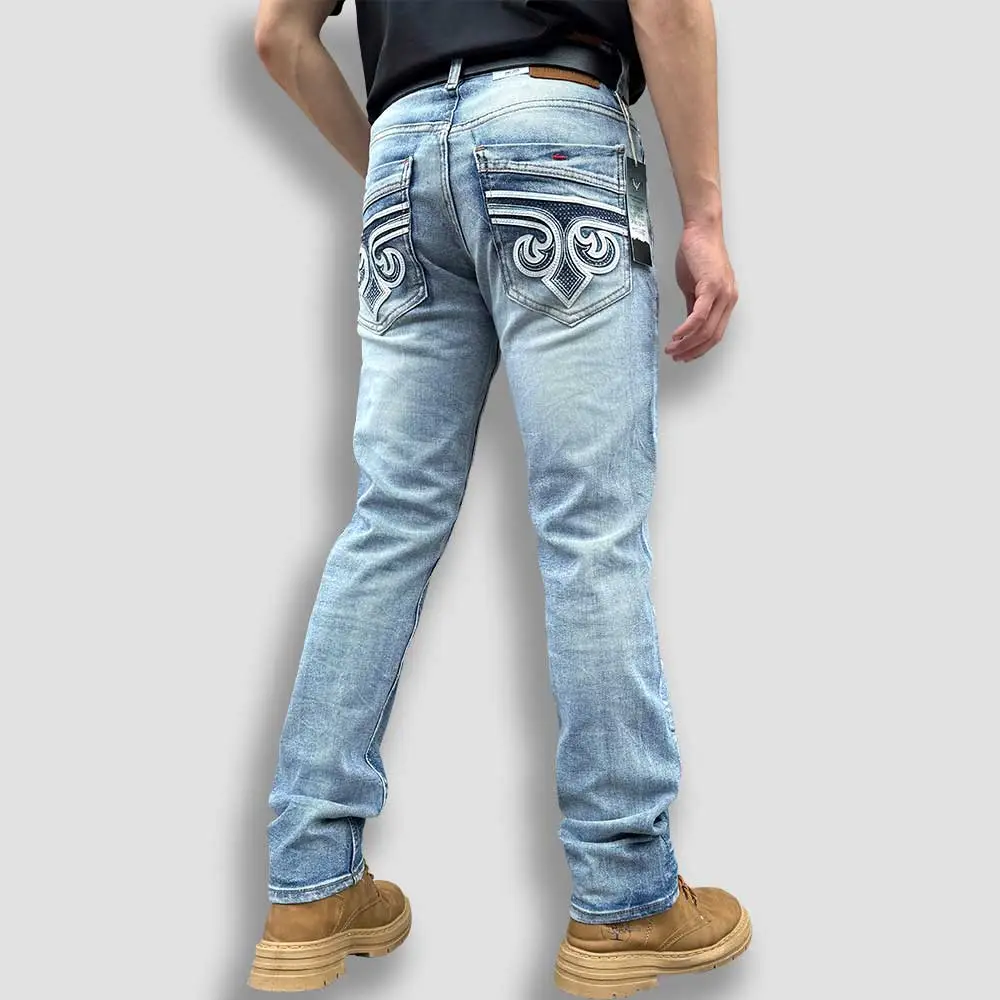 Each pair of Western jeans for men is crafted with precise stitching and a refined faded wash that gives them a naturally worn look without sacrificing strength. The embroidered back pockets showcase detailed Western-inspired artistry, making these jeans an instant statement piece.